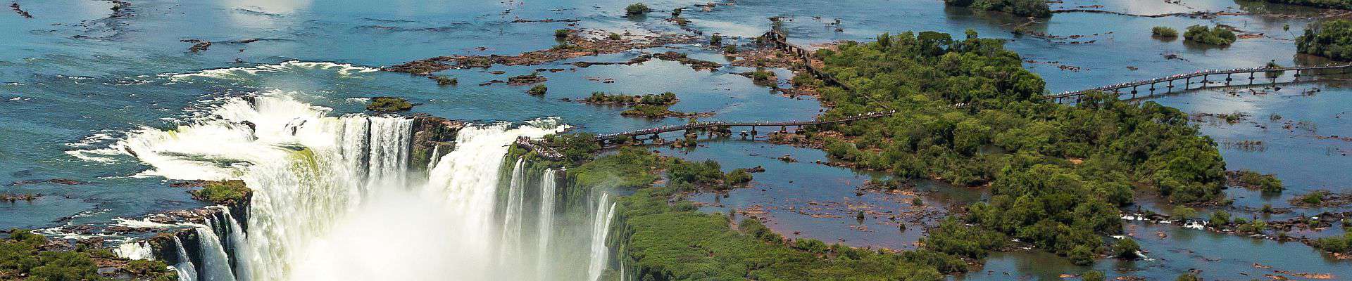Die Wasserfälle von Iguaçu gehören zu den spektakulärsten Naturwundern der Erde. 275 einzelne Wasserfälle erstrecken sich über fast 3 km Breite und stürzen bis zu 82 Meter in die Tiefe. Das UNESCO-Weltnaturerbe liegt an der Grenze zwischen Brasilien und Argentinien.