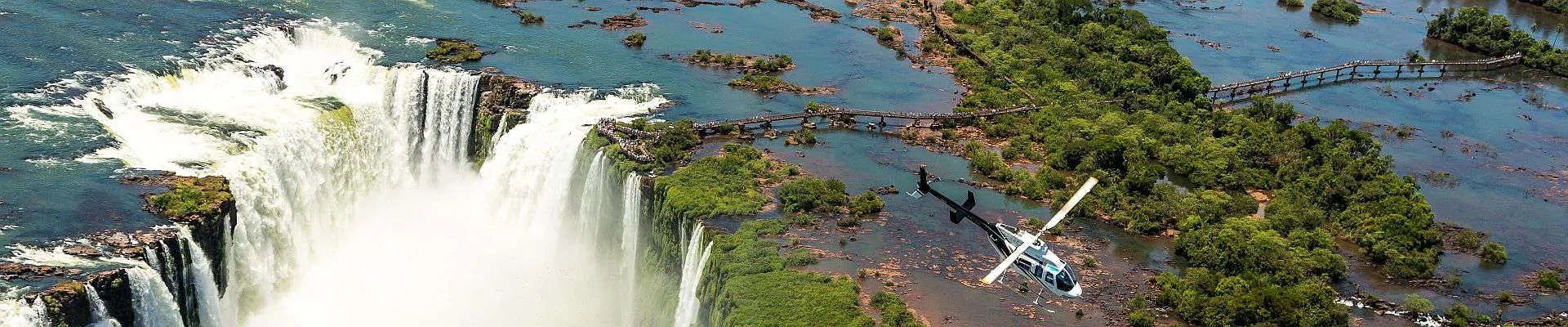 – Argentinische Seite der Iguazú-Wasserfälle: Wanderwege mit tiefen Einblicken in den Dschungel, Zugfahrt sowie obere und untere Rundwege mit Brücken, Aussichtsplattformen und Stegen bis direkt an den Teufelsschlund – Garganta do Diabo.